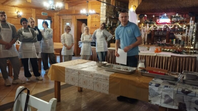 Kulinarna przygoda rozpoczęła się w niezwykle klimatycznym miejscu – „Koperkowej Karczmie”. Spotkanie otworzyło krótkie wprowadzenie w zwyczaje bożonarodzeniowe, podczas którego prowadzący warsztaty, pan Sławomir Koper, przypomniał uczestnikom, jak ważną rolę w świątecznym celebrowaniu odgrywają potrawy. To właśnie one od pokoleń budują atmosferę świąt, łączą rodziny i przywołują wspomnienia.