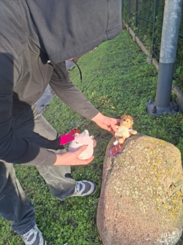 Po zakończeniu przygotowań nadszedł czas, by misie „ruszyły w miasto”. Młodzież rozwiozła i rozmieściła je w różnych punktach Elbląga – na ławkach, w parkach, przy szkołach i na skwerach. Widok opatrzonych pluszaków wzbudzał zaciekawienie przechodniów. Niektórzy zatrzymywali się, by zrobić zdjęcie, inni czytali dołączone przesłanie. Część osób przystawała na moment w ciszy, pozwalając sobie na refleksję. Misie stały się impulsem do rozmów i poruszania trudnego, lecz niezwykle istotnego tematu. Młodzież nie kryła dumy, obserwując reakcje elblążan. Widziała, że ich praca nie poszła na marne, a przesłanie kampanii dociera do ludzi w szczery i symboliczny sposób.