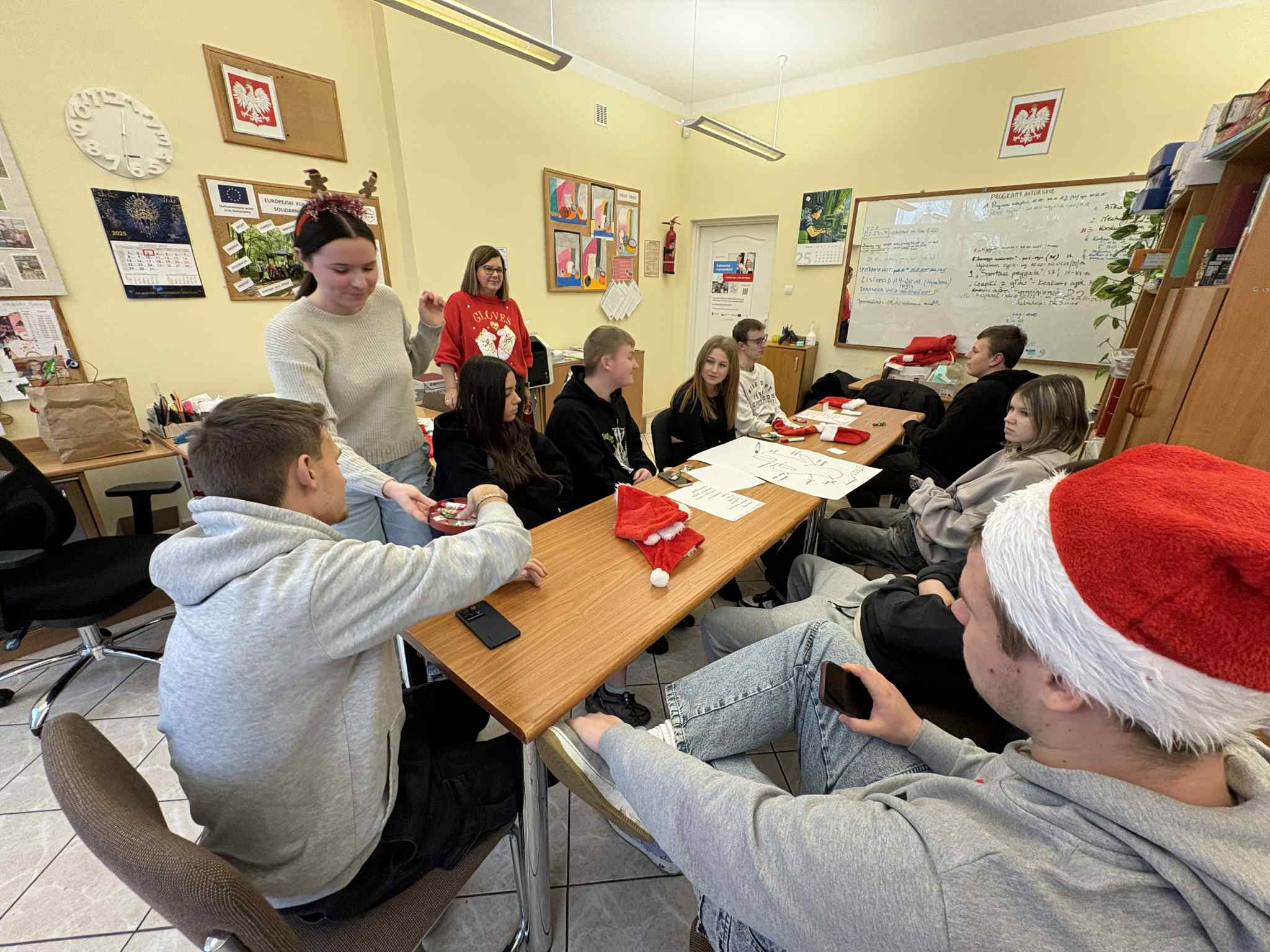 Już od pierwszych minut uczestnicy poczuli wyjątkowy, świąteczny klimat zajęć. W tak przyjaznej atmosferze łatwiej było przełamać pierwsze bariery i rozpocząć wspólne ćwiczenia mające na celu wzmocnienie świadomości emocjonalnej młodzieży. Głównym celem było nie tylko lepsze poznanie się, lecz także rozwijanie umiejętności współpracy, które okażą się nieocenione podczas pracy z portugalskimi pracodawcami. Zabawy integracyjne wywołały wiele uśmiechu, otworzyły przestrzeń do rozmów i zbudowały fundament pod wzajemne zaufanie.