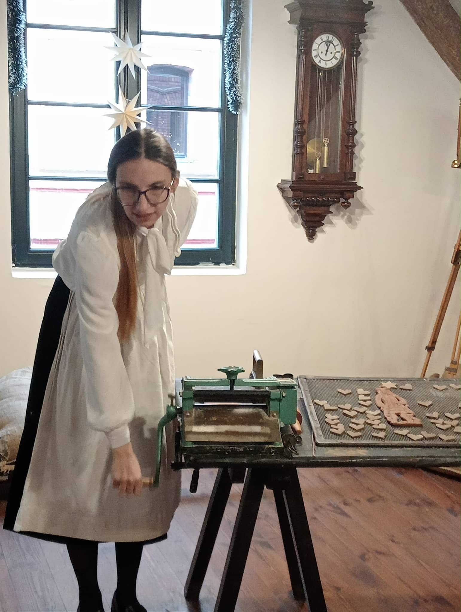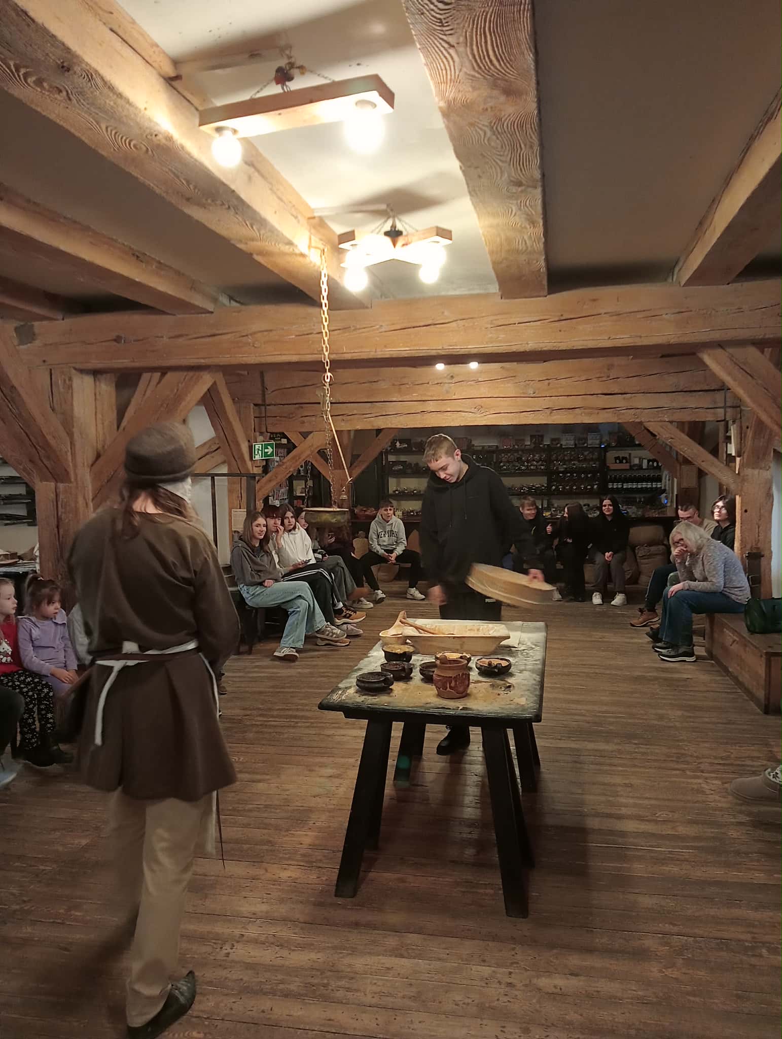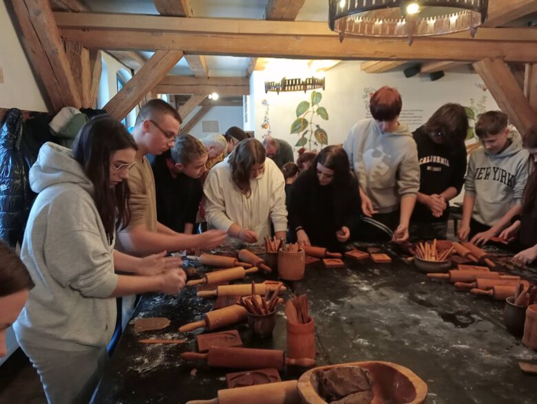 Kolejnym punktem programu była wizyta w Żywym Muzeum Piernika. Uczestnicy z zainteresowaniem wysłuchali opowieści prowadzącej, pełnych ciekawostek o najsłynniejszym toruńskim przysmaku. Następnie przyszedł czas na praktykę – warsztaty wypieku tradycyjnych pierników. Młodzież miała okazję samodzielnie przygotować ciasto, obserwować proces wypieku, a potem oddać się najprzyjemniejszej części spotkania – dekorowaniu własnych wypieków. W tej chwili każdy mógł poczuć się jak prawdziwy artysta cukiernik. Wizyta w muzeum dostarczyła uczestnikom nie tylko kulinarnych doznań, ale również wielu wartościowych doświadczeń edukacyjnych.