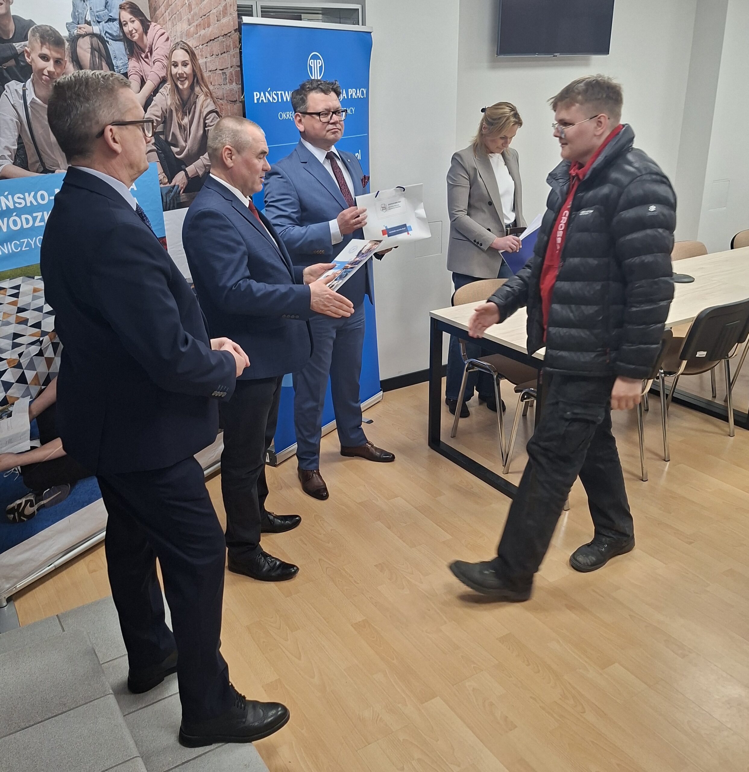 Uroczyste podsumowanie konkursu poprowadzili Jarosław Kowalczyk, Okręgowy Inspektor Pracy w Olsztynie, oraz Jarosław Pieniak, Wojewódzki Komendant OHP. W swoich wystąpieniach podkreślili, jak ogromne znaczenie ma znajomość przepisów prawa pracy, szczególnie w kontekście podejmowania zatrudnienia przez osoby młodociane. Zwrócili również uwagę, że świadomość praw i obowiązków pracownika to fundament bezpieczeństwa, który pozwala uniknąć wielu zagrożeń i budować odpowiedzialne podejście do pracy już od pierwszych doświadczeń zawodowych.