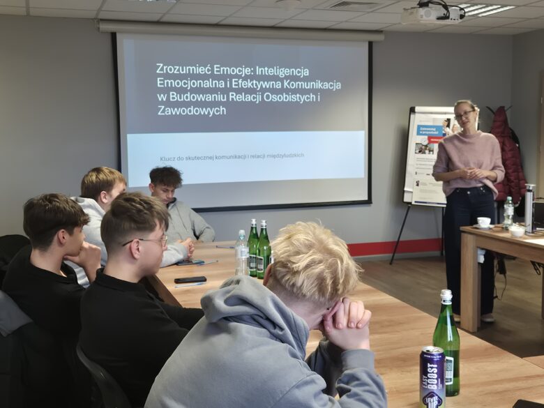 Pierwsze szkolenie – „Zrozumieć emocje – w jaki sposób inteligencja emocjonalna i efektywna komunikacja interpersonalna pomagają w budowaniu relacji osobistych i zawodowych, z uwzględnieniem nieoczekiwanych zmian” – otworzyło przed młodzieżą świat emocji, o którym na co dzień rzadko się mówi. Uczestnicy odkrywali, jak emocje wpływają na ich decyzje i relacje oraz jak można je wykorzystać jako wsparcie, a nie przeszkodę. Warsztaty pełne rozmów, ćwiczeń i refleksji pokazały, że empatia i uważne słuchanie potrafią naprawdę wiele zmienić.