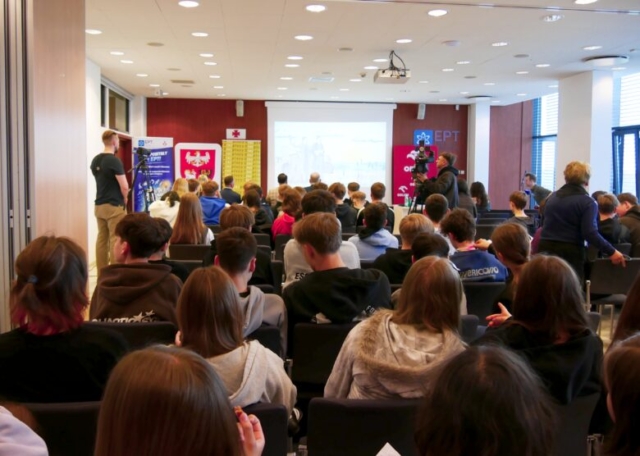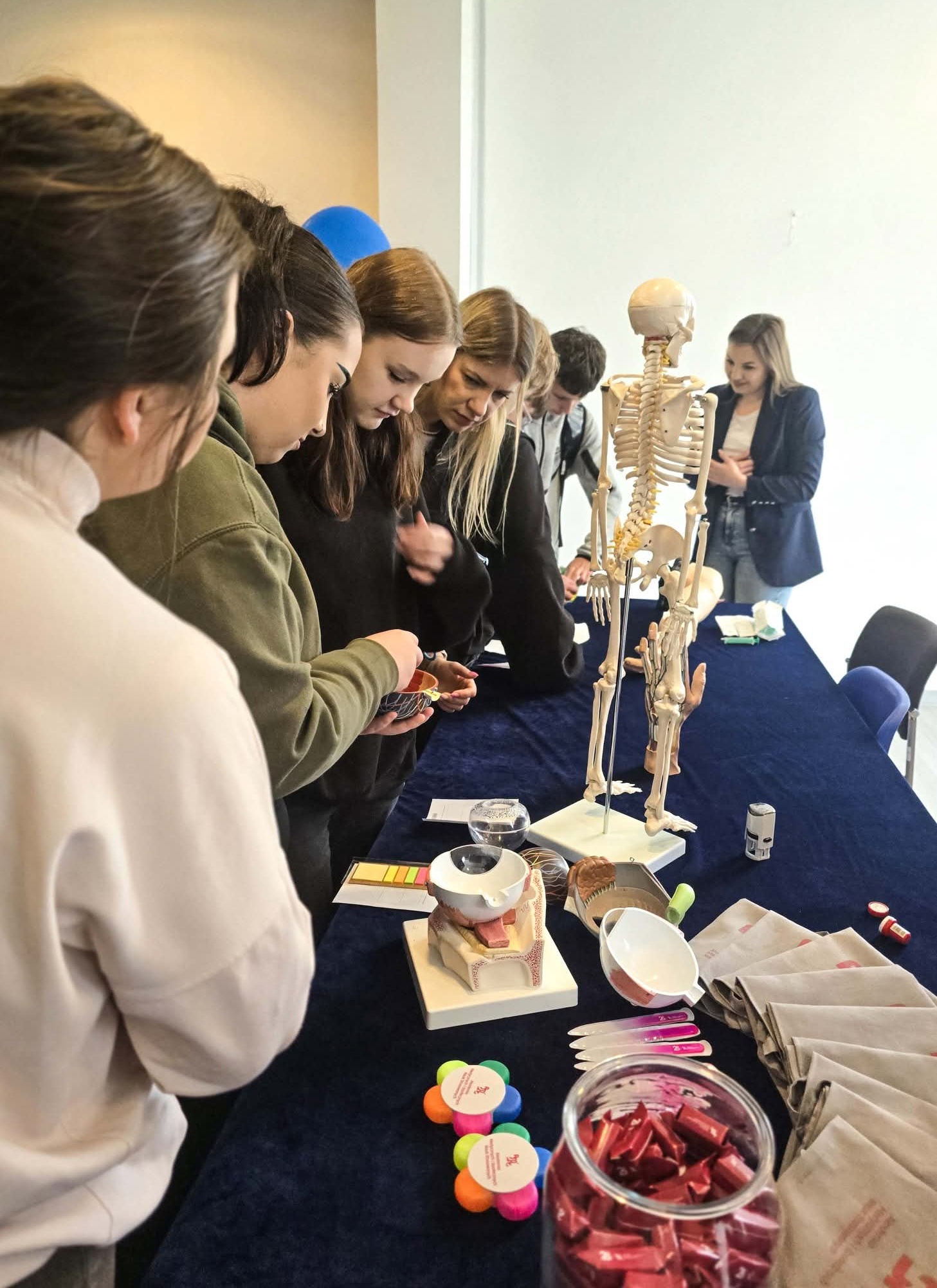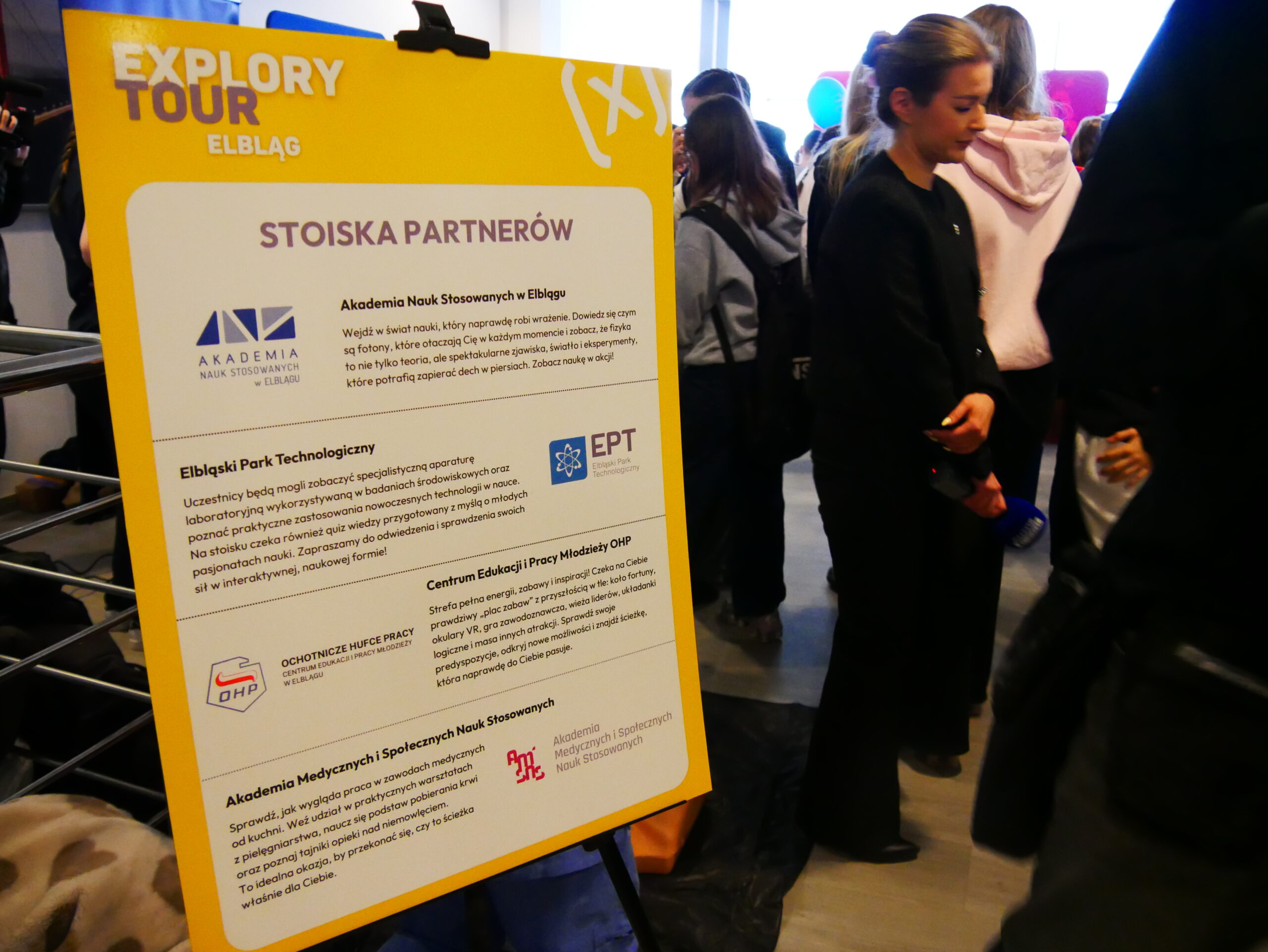 Nie zabrakło również praktycznego wymiaru wydarzenia. Na uczestników czekały interaktywne stoiska partnerów: Centrum Edukacji i Pracy Młodzieży OHP w Elblągu, Akademii Medycznych i Społecznych Nauk Stosowanych, Akademii Nauk Stosowanych w Elblągu oraz Laboratorium Zaawansowanych Analiz Środowiskowych EPT – od technologii VR i gier edukacyjnych, przez eksperymenty z fotonami, po warsztaty medyczne.