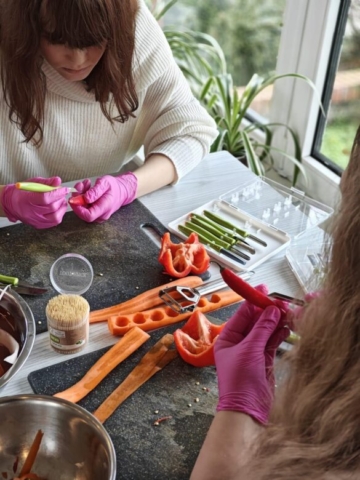 Choć szkolenie skupiało się na podstawach carvingu, ważne było także pokazanie, że kreatywność może stać się pomysłem na biznes. Młodzież zobaczyła, gdzie wykorzystuje się takie dekoracje – od wesel po firmowe eventy – i jak rośnie zapotrzebowanie na osoby, które potrafią je tworzyć.