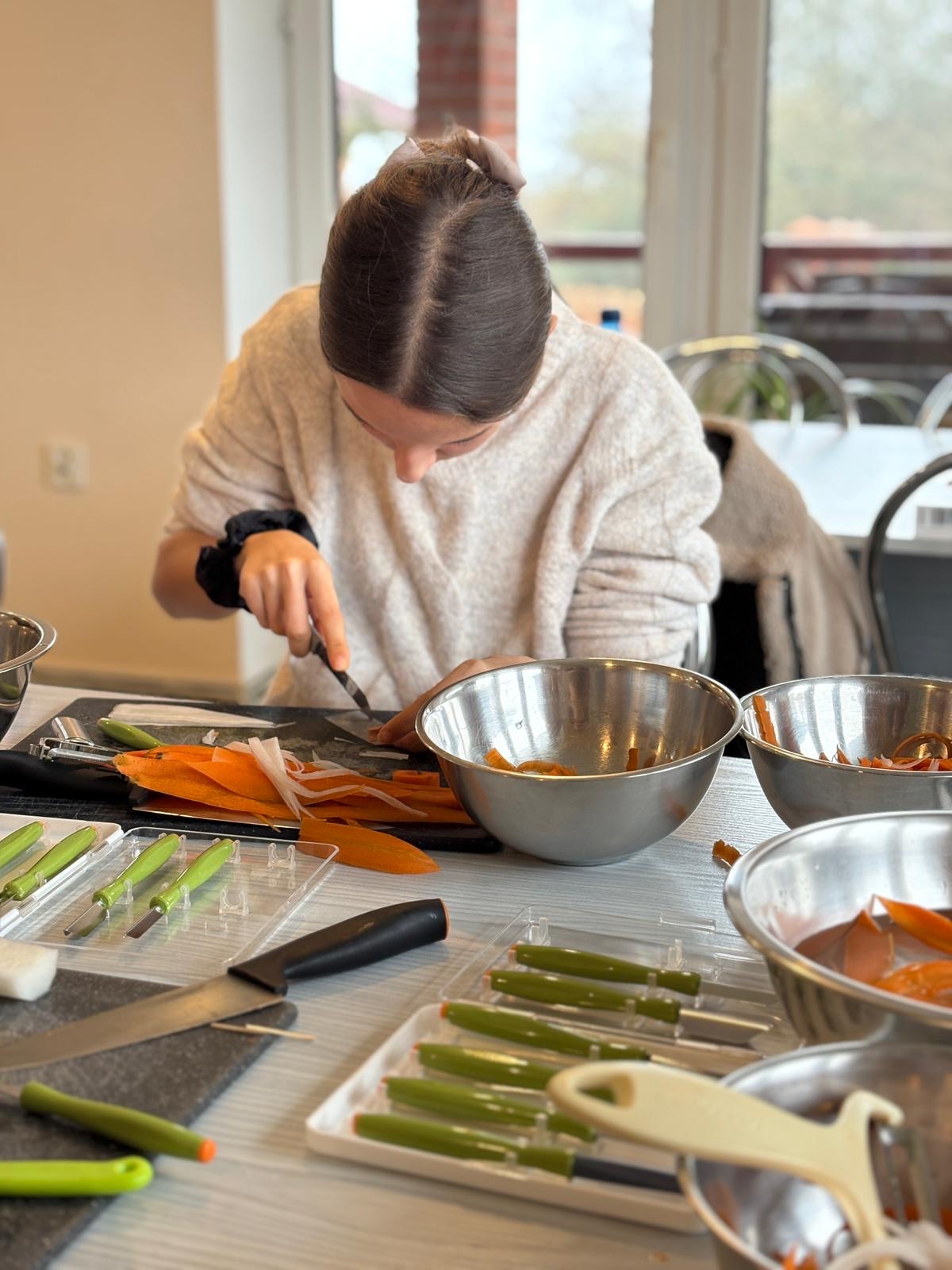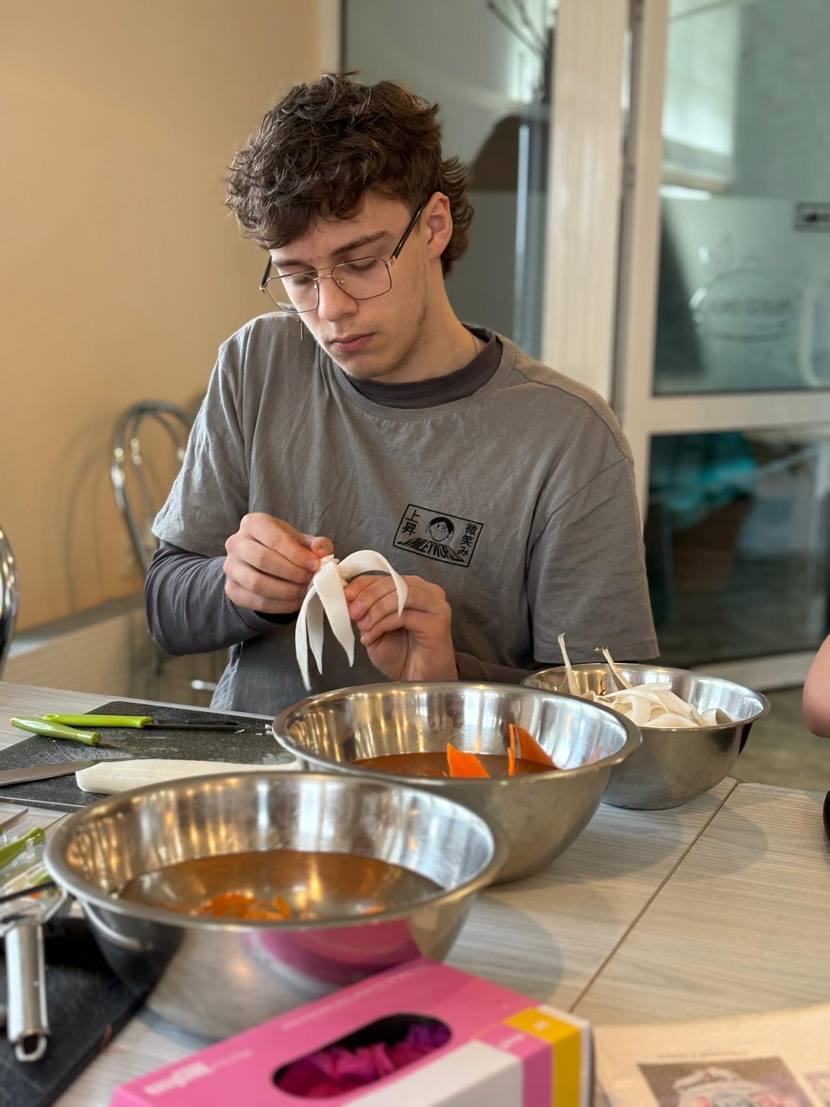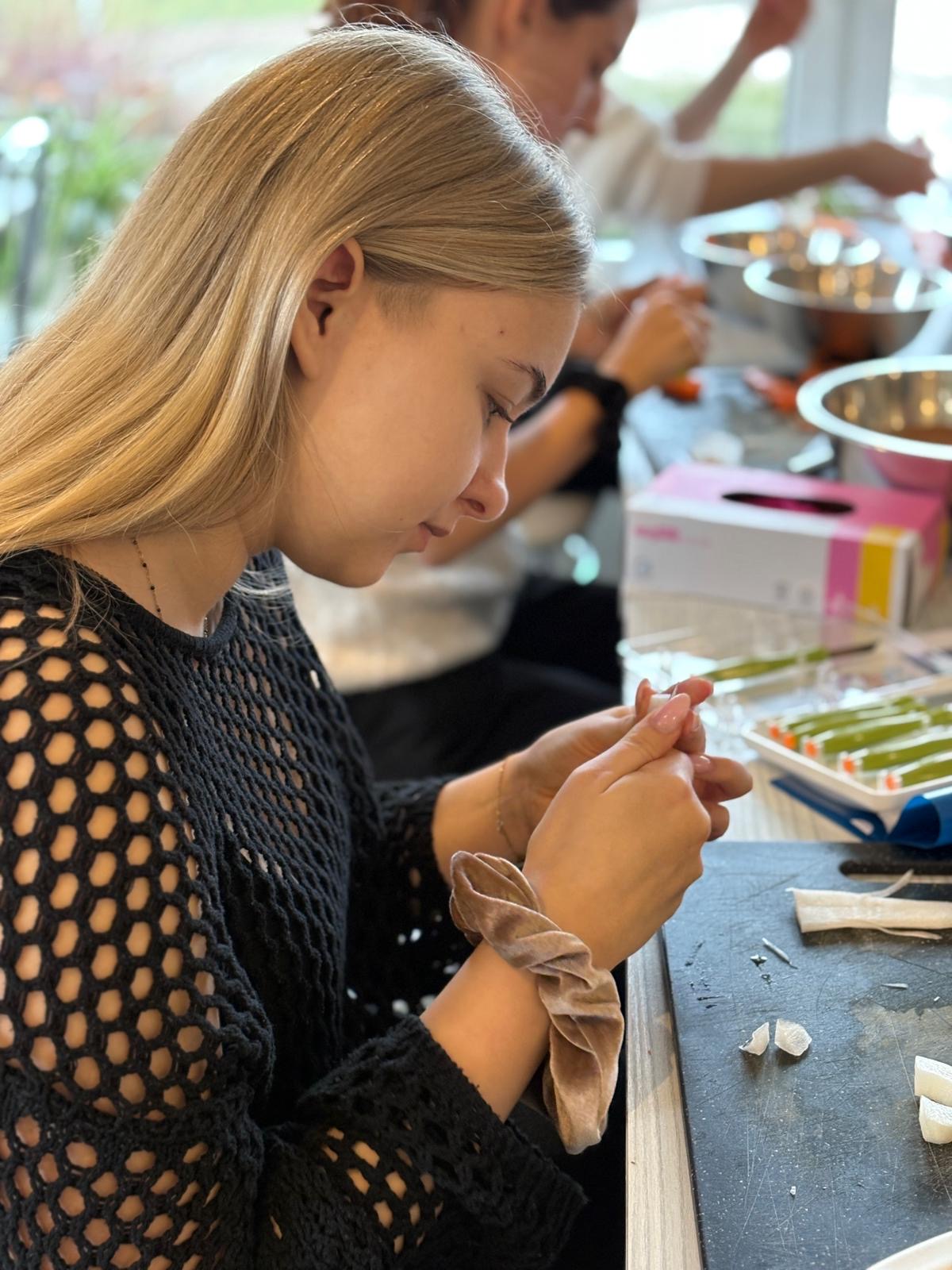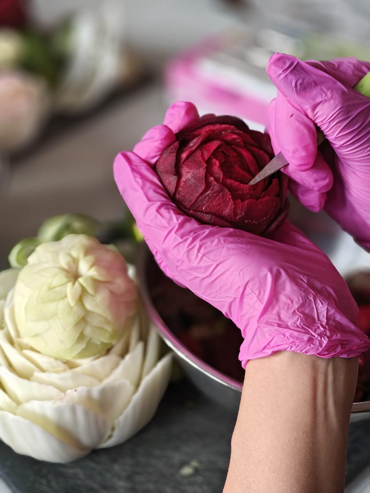 Choć szkolenie skupiało się na podstawach carvingu, ważne było także pokazanie, że kreatywność może stać się pomysłem na biznes. Młodzież zobaczyła, gdzie wykorzystuje się takie dekoracje – od wesel po firmowe eventy – i jak rośnie zapotrzebowanie na osoby, które potrafią je tworzyć.