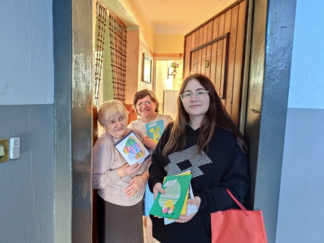 W tym roku w rolę jednodniowych listonoszy wcieliły się Alicja, Wiktoria i Amelia. Pod opieką wychowawców odwiedziły starszych mieszkańców, wręczając im przygotowane kartki. Każde spotkanie było wyjątkowe – pełne uśmiechów, wzruszeń i krótkich rozmów, które dla wielu osób były bezcenną chwilą bliskości.