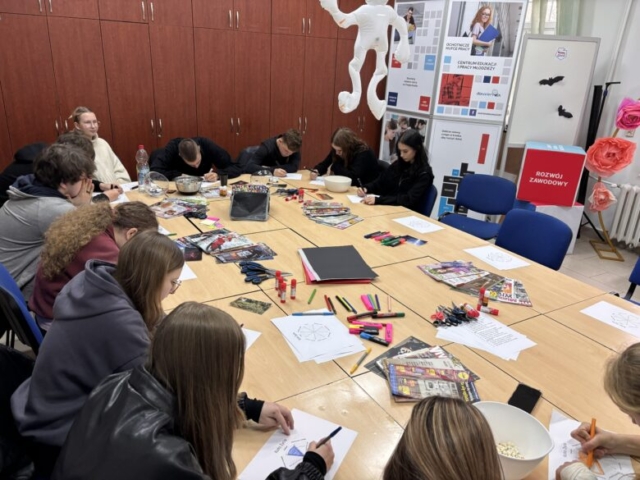 Warsztaty stały się nie tylko przestrzenią do pracy własnej, lecz także okazją do głębszej refleksji nad wartościami, które kierują młodymi ludźmi. Uczestnicy zastanawiali się nad tym, co jest dla nich ważne w życiu, jakie mają talenty, co ich inspiruje i w jaki sposób te zasoby mogą stać się fundamentem przyszłej kariery. Spotkanie odbywało się w atmosferze otwartości i wzajemnego wsparcia – młodzież chętnie wymieniała się pomysłami, dzieliła doświadczeniami i motywowała nawzajem do działania.